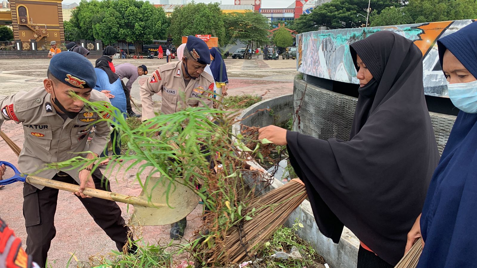 " Benar pagi tadi kami terjunkan 1 regu anggota beserta perlengkapan korvey / kerja bakti untuk mengikuti kegiatan bakti sosial yang diselenggarakan oleh Korem 141 Toddopuli dalam rangka menyambut HUT yang Ke-65 Kodam XIV/ Hasanuddin," tutur Kompol Nur Ichsan